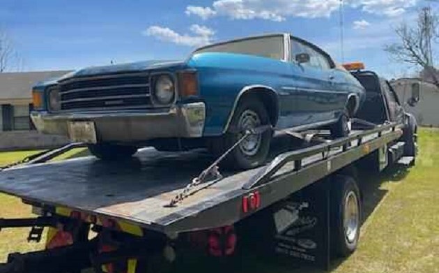 General Motors’ A-body intermediates were in their last outing of a five-year production cycle in 1972. So, the cars were little changed over the prior year in anticipation of big developments coming with the new Colonnade bodies in 1973. This ’72 Sport Coupe is said to be a one-owner car with just 20,000 miles, yet it looks like it hasn’t run in ages, just extracted from long-term storage. From the back of a tow truck in Emerald Isle, North Carolina, this Chevy is available here on Facebook Marketplace for the best offer (starting at $1). Thanks for this vintage tip, Chuck Foster!