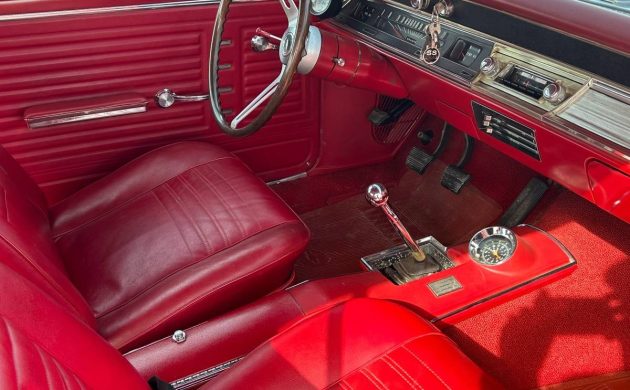 Considering this Chevelle’s history and the claims made by the seller, the spotless state of its dazzling Red vinyl interior trim is unsurprising. There is no evidence of significant wear and only a couple of minor scuff marks on the driver’s side kick panel where a foot has obviously brushed against it. The carpet is excellent, the dash and pad show no evidence of deterioration, and the Dealer Invoice confirms that the first owner ordered the car with a simulated timber wheel, a console, and an AM/FM radio with an optional rear speaker.