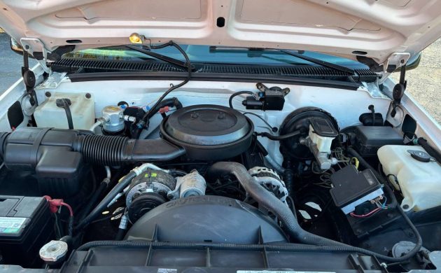 This Sierra is also an interesting combination of options, featuring V8 power, rear-wheel drive, and the optional 8-foot long bed. This wasn’t the sexy build with a flareside or a short bed, or one with four-wheel drive. This is a simple rig and one that is not likely to fail or command much attention, and even in the event of needing bodywork, it would be dead-simple to fix. Check out the firewall – zero signs of dirt or old oil stains and what looks like near-spotless white paint. Details like this are evident throughout the listing, and while you won’t be snapping any necks with a truck like this, you’ll also spend very little to have a truck that will likely outlast you. Thanks to Barn Finds reader Rocco B. for the find.