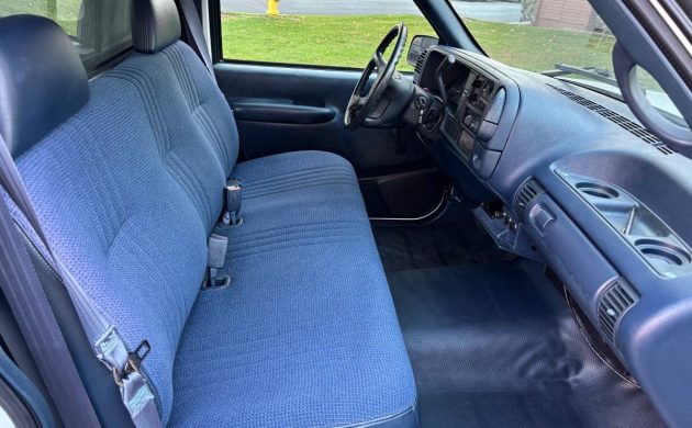 The interior is practically spotless, with blue upholstery and matching dash and related plastic trim. I was honestly expecting a tan interior, as white over tan seems like the standard-issue combo on many GM trucks from this era. This indicates to me the first owner may have ordered this truck just the way they wanted it, even with its basic trim level. In 1995, GM began offering a driver’s side airbag as part of a mid-year refresh, but I don’t see that here – so perhaps this truck was built earlier in the production run. Crank windows and lots of manual features means there’s very little to go wrong inside this clean cockpit.