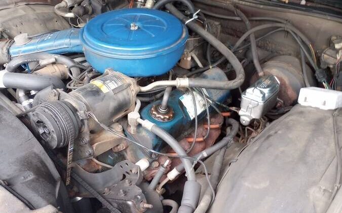 Power (but not a lot) comes from a 152 net HP, 351 CI V8 engine that is said to be modified. There is no elaboration beyond that and there is no visual evidence of external modifications, (unless you consider the inclusion of a General Motors Frigidaire A-6 A/C compressor a modification). It has had its master cylinder replaced – always a good move. The seller says that it “drives nice“. Gear changing happens automatically as that’s all that was available.