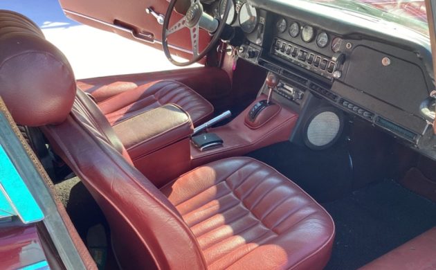 Here’s the pitch: “This is…the best-looking [E-Type] available in this price range, and the color is awesome! It has factory AC and chrome wire wheels and is a matching-numbers engine car! This is a rare Jaguar!” Does the stated option to install a small-block Ford indicate a lack of confidence in the venerable overhead-cam 4.2-liter Jaguar six? There are 100,000 miles on the odometer, a lot for one of these.