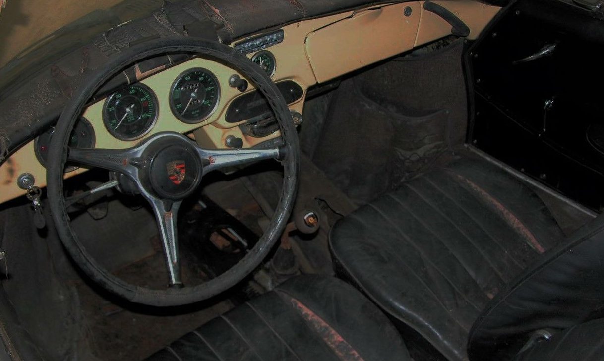 The seller notes that this 356 was part of the Holtzorth Collection, which is unknown to me (Google didn’t turn anything up either). The seller says it was parked outside for two years and then went into storage for the remaining 20 of its two-decade plus slumber. It does look completely undisturbed with near-perfect shut lines on all the panels we can see. Hubcaps are still present, and though the top is rough, the convertible carriage frame is said to still be in good shape.