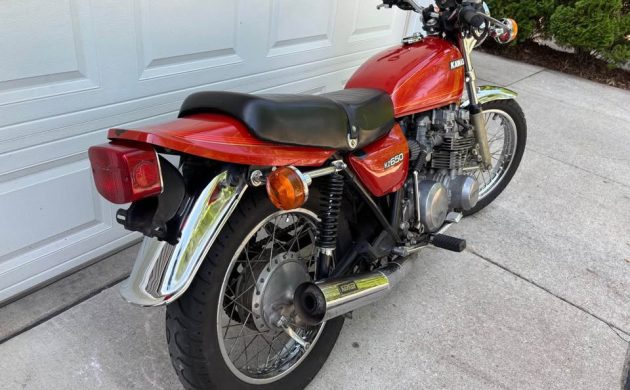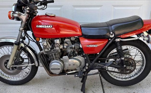 Kawasaki made the KZ650 from 1977 through 1983, and they were known as the Z650 in other countries, or the KZ650 here. The ’79 models in the U.S. had an air injection system, which was supposed to help with emissions. The seller says this one has only traveled 22,800 miles over the last 46 years; that’s not a lot of use. The next owner will want to change the front fork oil, check out the steering head bearings, and, even if they don’t need it, replace the fork seals and bushings. Oh yeah, and new tires, as always.