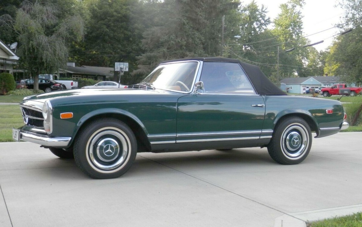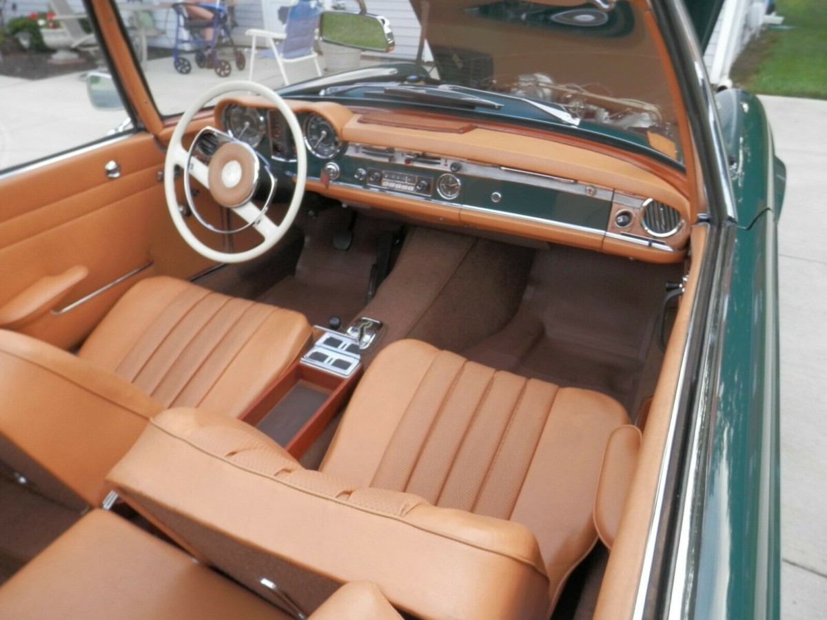 The late Janis Joplin’s last recorded song began with the line, “Oh Lord, won’t you buy me a Mercedes-Benz?” If this was the car that she had in mind, I can understand why she wanted it. The Dark Green paint that the 230 SL wears looks stunning. It has a couple of very minor stone-chips visible, but not a lot else to really be critical of. It has an impressive shine, while the panels appear to be as straight as an arrow. There is not a spot of rust to be seen anywhere, and not only does the owner supply a great selection of photos to demonstrate this, but he also supplies two very good “walk-around” videos as well. I couldn’t really split them to decide which was the best, so you will find both videos included at the bottom of this article. The Black soft-top is in very nice condition, while a factory hardtop is also included in the sale. The external trim and the chrome looks spotless, while the glass is free from any discernible flaws. The color-coded hubcaps and the trim rings are free of any damage, while the white-wall tires provide a nice finishing touch to the vehicle’s external appearance. When you look at the overall condition of the Mercedes, it makes the owner’s claim that it has always been stored in a climate-controlled garage appear to be very plausible.