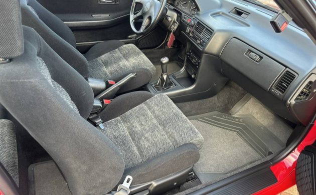When you drink in all the details, it dawns on you just how unbelievably clean this Integra is. The seller notes that it spent many years in storage and was essentially unused in that time. That doesn’t mean it was neglected, however, because the bevy of data and documentation shown in the listing seems to suggest it was well-loved. An original window sticker, owner’s manuals, and what looks like a thick stack of receipts all accompany the Integra. The interior, as you can see, is pristine, with seats that still show excellent bolstering, carpets with no wear and tear, and OEM floor mats protecting them. The dash shows no cracks and it appears the factory radio remains in place. The best part? This is a simple Integra, with no sunroof, crank windows, and a Honda gearbox that I’ll bet still shifts like butter.