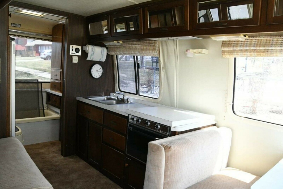 The interior does look like that of a low mileage motorhome, as it’s clean and bright with seemingly original materials still in place. The “compact” GMC still came loaded with all the creature comforts of home inside, from a sink and stove to couches and a refrigerator. The seller notes that all major appliances still appear to be working, as does the Onan 4K generator that has a mere 537 hours of total use. The furnace provides good heat and the air conditioning still works as well. Now, regrettably, the seller doesn’t go into details about the furnishings, drapes, or carpets, which is too bad considering it all looks to be in good shape.