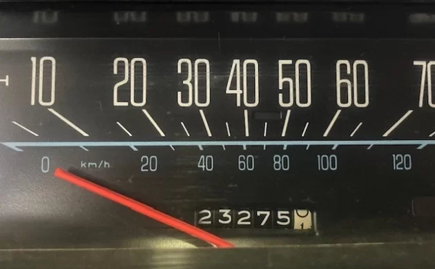 The museum car is not perfect. Although the seller has cleaned the fuel tank and installed a new fuel pump, they mention that it will eventually need a carburetor rebuild. Nevertheless, it “runs extremely smooth and the brakes are totally operable”; those brakes were front discs/rear drums for 1976. The top has some light hail damage, there are a couple seam tears in the interior, and “the left rear quarter was painted at one time.” Also, the AM radio doesn’t work and the fuel gauge is inaccurate.