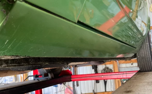 The most important thing to look for when Vega shopping is rust. Although this car was clearly parked on a lift for photos, this is the only picture of the undercarriage that is posted on the eBay ad, which is a shame. The rocker panel does seem to look good, so that’s something.