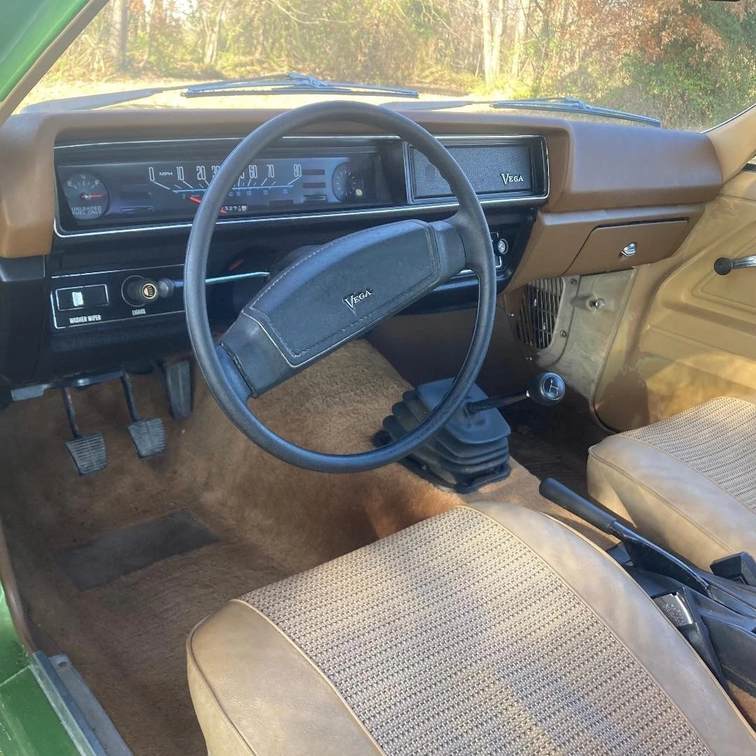 I know I’ll catch a lot of flack for this but, this would make a perfect period street machine! A tunnel rammed 355 and a super T10 feeding a 12 bolt with 4.10 gears, bass boat green metal flake paint, crushed velvet interior, that is my dream Vega. Eat your heart out