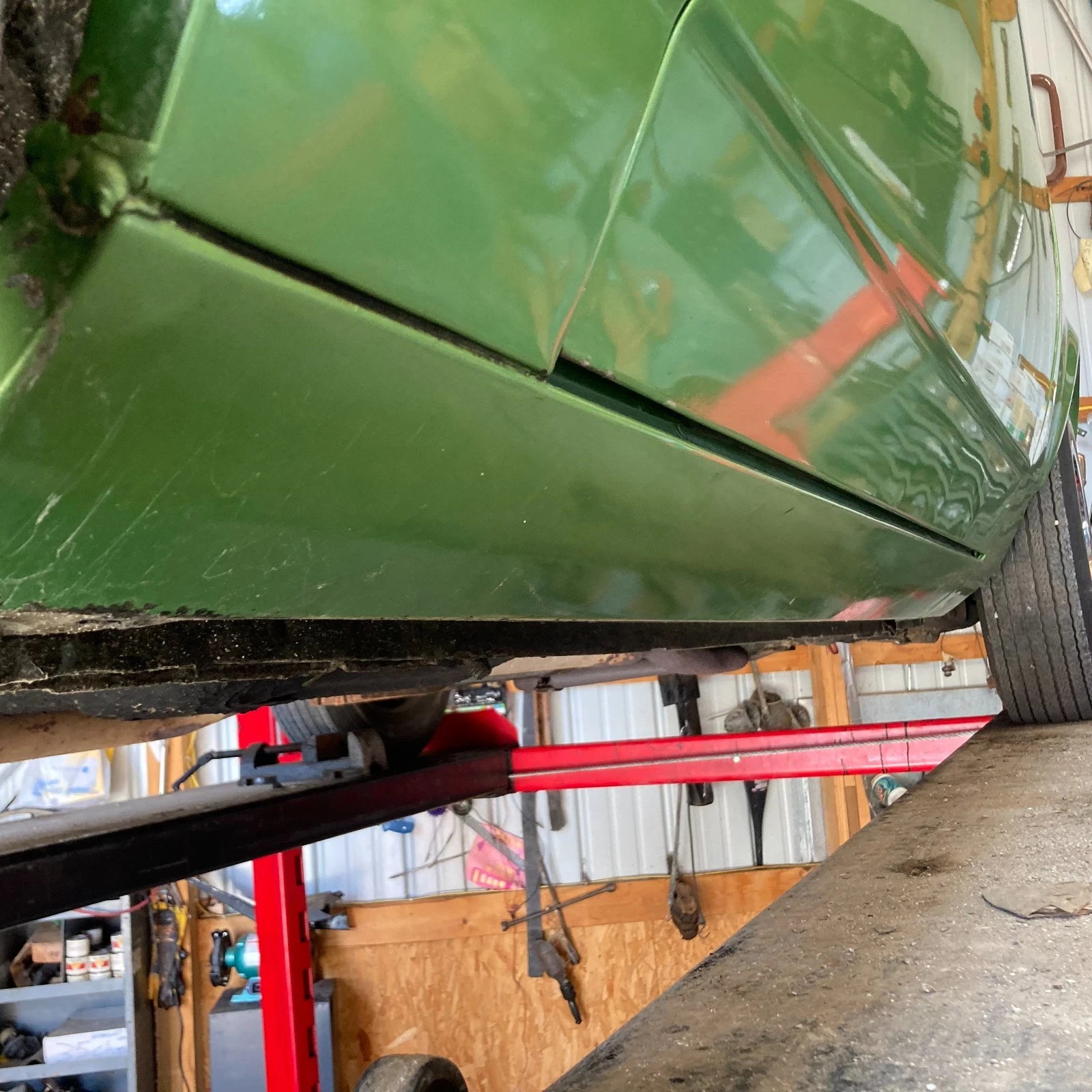 The most important thing to look for when Vega shopping is rust. Although this car was clearly parked on a lift for photos, this is the only picture of the undercarriage that is posted on the eBay ad, which is a shame. The rocker panel does seem to look good, so that’s something.
