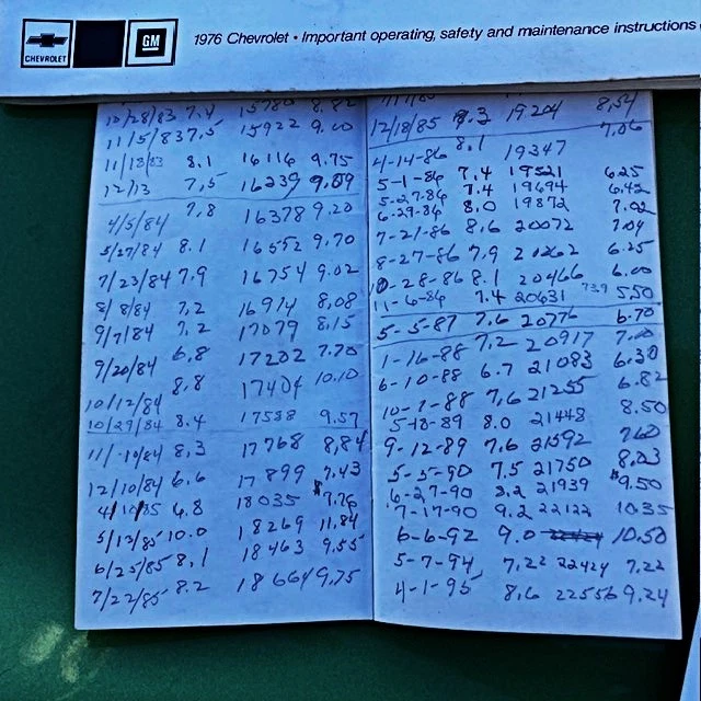 A clean, unmolested economy car of this era is hard to find, perhaps even more so for the rust-prone Vega. It’s fun to see one in good shape. A couple interesting features: the A78-13 tires (I remember that tire size), and the gas purchase journal. Three-on-the-floor, surprising. At the local cruise-in I suspect this would be more entertaining than the SS396 parked next to it.