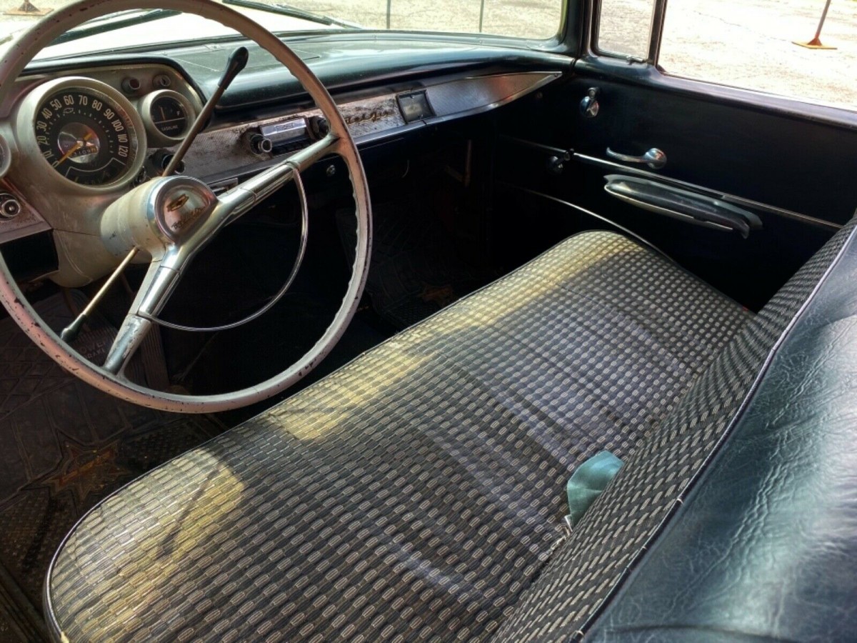 The owner states that the 235ci six-cylinder engine that we find under the hood is original and that it is backed by a 2-speed Powerglide transmission. So far, so good. This six should be producing 140hp, and with the Powerglide attached, that would allow the Bel Air to cover the ¼ mile in 21 seconds. That’s not fast, but then again, this is not a muscle car either. A previous owner has made some changes, and those Rally wheels conceal front disc brakes. The owner claims that the ’57 runs and drives well, and this YouTube video allows us to hear it running. I have to say that the 235 sounds crisp and clean, with no smoke or odd noises.