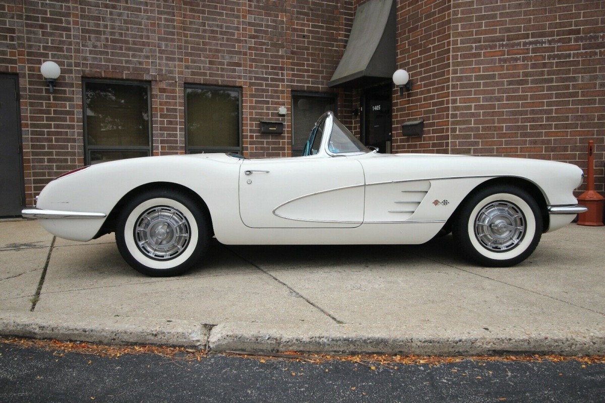 There were no engine upgrades for the 1959 Corvette over its 1958 predecessor, but owners were still spoiled for choice. In this case, the original owner chose the 2×4-equipped 283ci V8, producing 270hp. The engine in this car is numbers-matching and is backed by the optional 4-speed manual transmission. The engine, clutch, and transmission have all been treated to a rebuild, and the car is said to run and drive very nicely. It is when we delve under the car that we discover the major non-original item. At some point in the past, the Corvette was treated to a brake upgrade, with the fronts being a 1970s-vintage disc brake conversion. I have no doubt that this would provide a major confidence boost when the time came to bury the brake pedal at high speed, but I also suspect that there might be one or two potential owners who would look at returning the brakes to their original configuration. What might tip the scales in favor of the latter option is the fact that not only is so much of the car original, but it does only have a genuine 24,800 miles on its odometer. I can definitely see the attraction of having the Corvette as an original, low-mileage survivor.