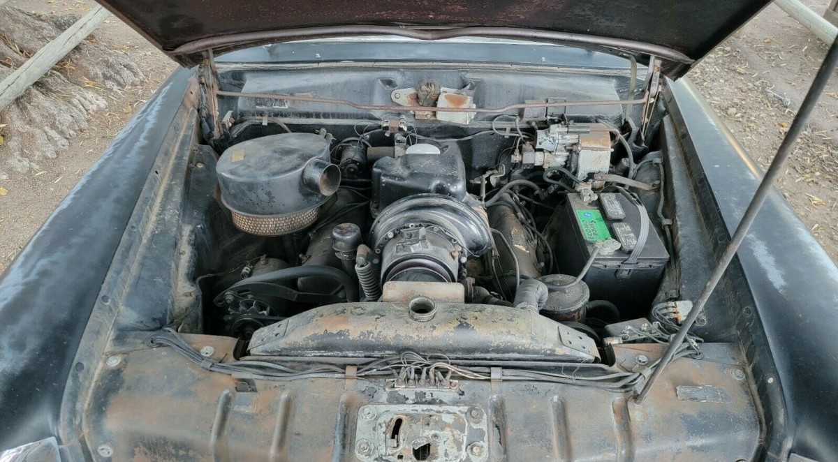 The car’s dark green paint isn’t bad for 64 years but has its share of patina (especially on the roof) and there are a few small rust spots, such as at the bottoms of the front fenders. The interior may have suffered the most over time, with the upholstery and dash panels cracked from age. And the headliner and carpeting are also due to be replaced. All the lights are in working order as are the power windows in the front doors, but not the back. If you want to see a video of the car running, the seller can accommodate you.
