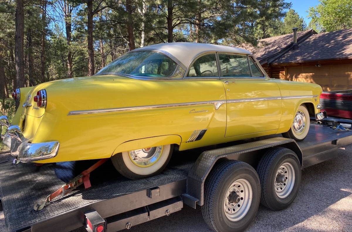 During its three years in the Ford line-up, the Crestline only saw minor changes each Fall. New in 1954 was the Skyliner version of the Victoria which had the tinted acrylic glass panel in the front section of the roof. Those were not as popular as the “regular” hardtops like the seller’s car, which would have been one of 95,000 built compared to 13,000 of the glass top jobs. Crestline’s were powered by either a 223 cubic inch inline-6 motor or the 239 CI overhead valve V8, which replaced the flathead.
