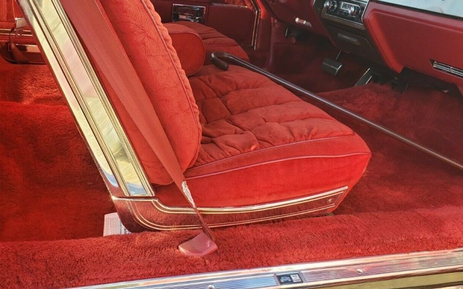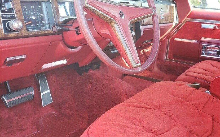 The seller claims, “You will not find a cleaner lower mileage car anywhere“. Quite possibly true, this one is a real looker and is in like-new condition. There is no explanation for this Bonneville’s limited usage but clearly, it has been well stored. The finish, trim, chrome, vinyl top, glass, wire wheel covers, you name it, this Bonneville has some serious Broughamness, with a capital B, going on. The finish, in particular, reveals great depth and shine with its Starlight Black hue, contrasting beautifully with the Carmine red interior and body-side pinstripe.
