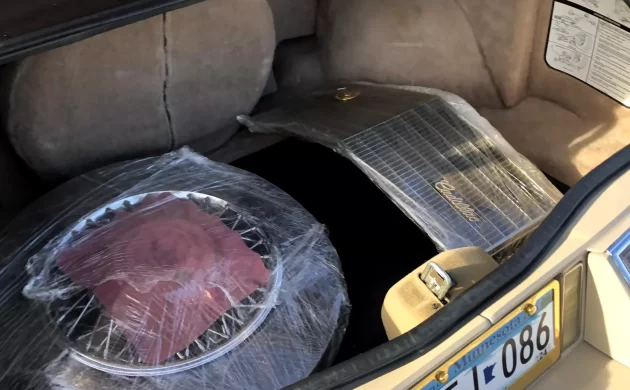 The seller confirms this Caddy was owned by a long-term elderly owner, and it appears he or she checked the box for numerous accessories when new. This includes a brand-new 5th wheel with a corresponding continental kit that was never installed, and that’s the original grille next to it. The reason the grille was removed is because this Seville comes with the “24K Gold Edition” trim option which upgraded the nose trim to “Rolls Royce”-style setup. I can only imagine how much it cost to buy this Seville when new, because it sure seems like the selling dealer got the buyer to check every single add-on possible. What do you think is a fair selling price for this well-preserved Seville?