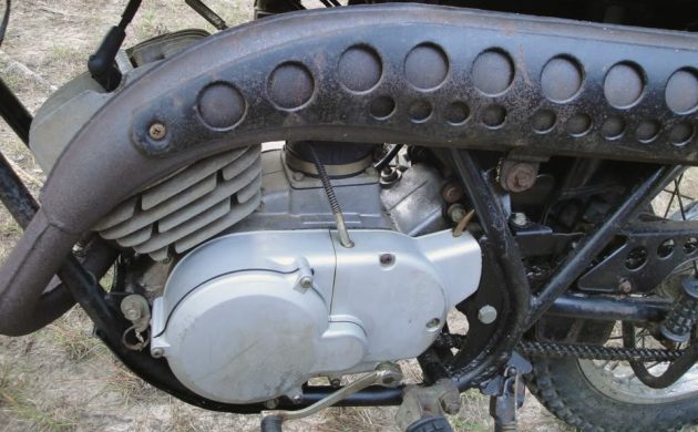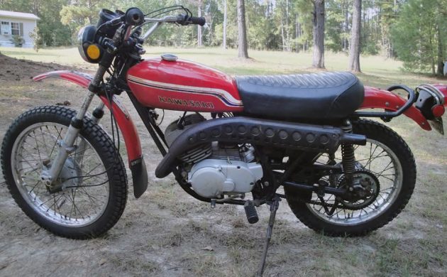 Sitting in that double-cradle frame is Kawasaki’s 174-cc two-stroke, oil-injected, rotary valve single-cylinder with just under 22 horsepower and just over 15 lb-ft of torque. It’s sent to the rear wheel via a five-speed manual transmission, and the seller says it runs great. There is no title, but they’re open to offers on this good-looking F7 175. Have any of you heard of this model?