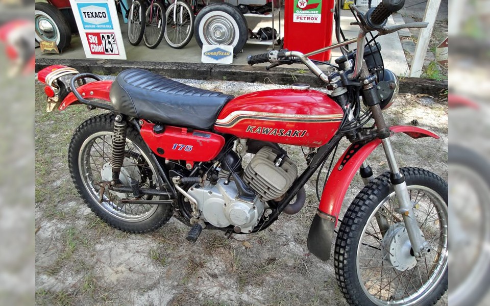 Then in the mid-80s, my brother got a Honda XL600R off-road bike, and that one was scary to ride. Somewhere between a 175 and a 250 is about the perfect-sized off-road bike for me. There isn’t much information out there on the F7 175 Kawasaki, but we do know they can hit 75 mph, and that’s fast on two wheels, no matter what size engine is under you.