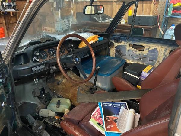 While the basic body of this 2002 doesn’t look too bad and no accident damage is visible, the driver’s side floor pan is completely rusted away. Once rust gets its never-sleep hands on a 2002, it’s not likely to be pretty. This is a major project for somebody.