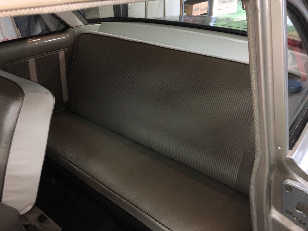 The interior shows no visible signs of wear. I’m assuming the bench seating surfaces are original given the low mileage. The door jambs reveal matching paint, and the dash shows no flaws. The automatic wouldn’t be my first choice, but given this isn’t the higher-performance model, it’s no big loss (other than being slightly less fun to drive.)