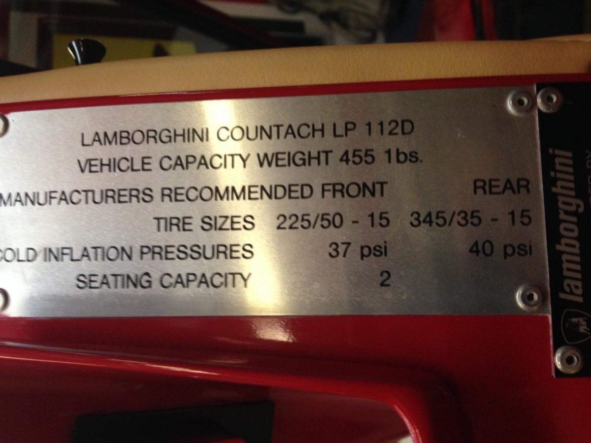 On the data plate it says “vehicle capacity weight 455 1bs. (should be lbs.). Could Lambo seriously have made such a bush-league mistake on a car like this? That looks really suspect to me.