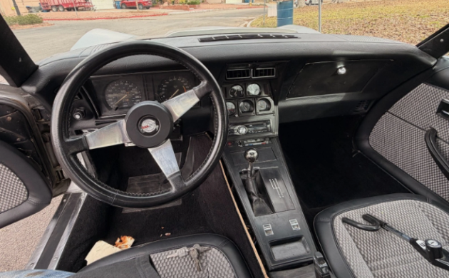 The paint on this ‘Vette is not original, but we don’t know when it was redone. The interior looks pretty good except for one spot on the driver’s seat cushion. We’re told there is no rust, but parts of the undercarriage look a bit crusty. The gauges act a little “wooky” at times due to a potential wiring issue. This seems like a decent ‘Vette that should be a good driver with a little more work.