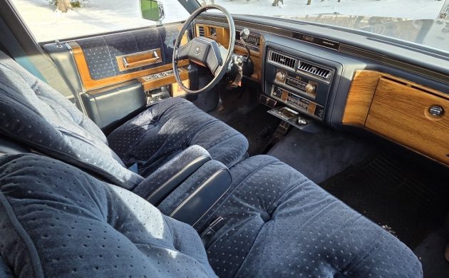 After a brief absence, Cadillac reintroduced the d’Elegance Package to the de Ville range in 1980. Costing a hefty $725, it brought interior enhancements like Venetian velour upholstery, a split front seat, and other interior upgrades, accentuating what was already a pretty luxurious motoring experience. This Sedan’s interior Blue trim matches the exterior color combination, and the condition is extremely impressive. Velour cloth often doesn’t age well, but there are no problems inside this classic. The lack of wear and other issues supports the mileage claim, indicating that this Caddy has been treated respectfully throughout its life. The carpet looks excellent, as do the dash, pad, and woodgrain trim. The interior isn’t short of creature comforts, featuring climate-control air conditioning, power windows, power locks, a six-way power driver’s seat, cruise control, a tilt wheel, remote exterior mirrors, and an AM/FM radio/8-track player.