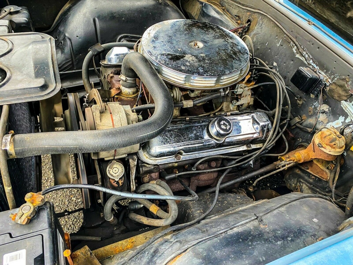 If the seller has serviced the vehicle as claimed, the pictures should have been taken after the service was done. The under-hood image shows none of the claimed services. The same image also shows some non-OE wiring running through the firewall. These are probably for the aftermarket tach and under-dash gauges. Both are unexpected in a low mileage 50+ year old vehicle. Looking at that engine image how many people would guess ~28k on the odometer? I wouldn’t.