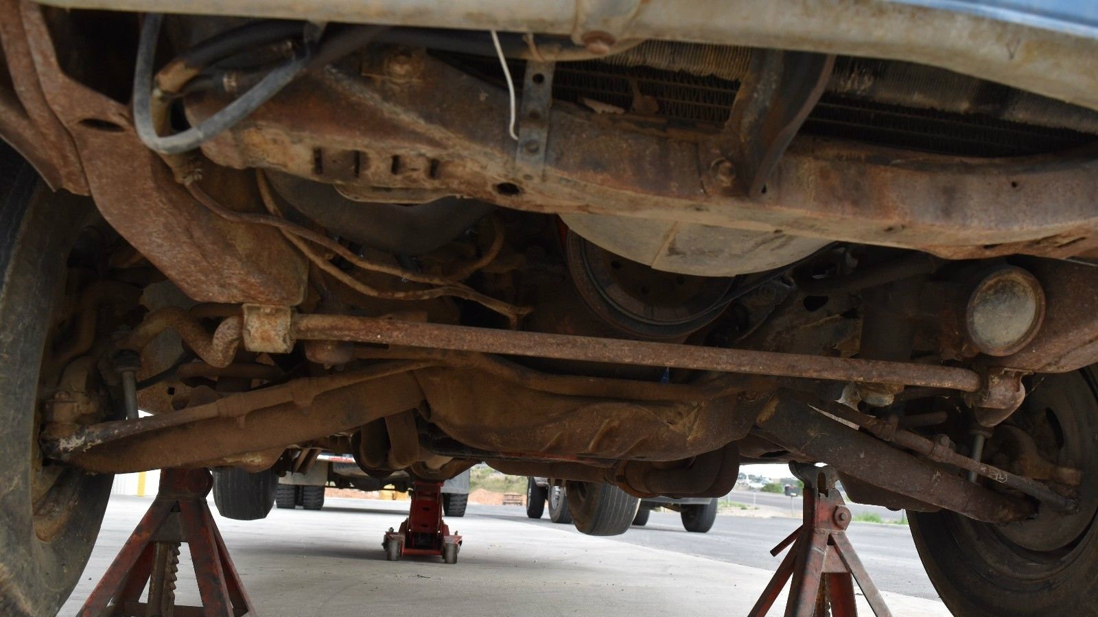 Under the car does look pretty solid, although everything does have a healthy coating of surface rust. I do appreciate the seller showing us the underside of the vehicle, though.