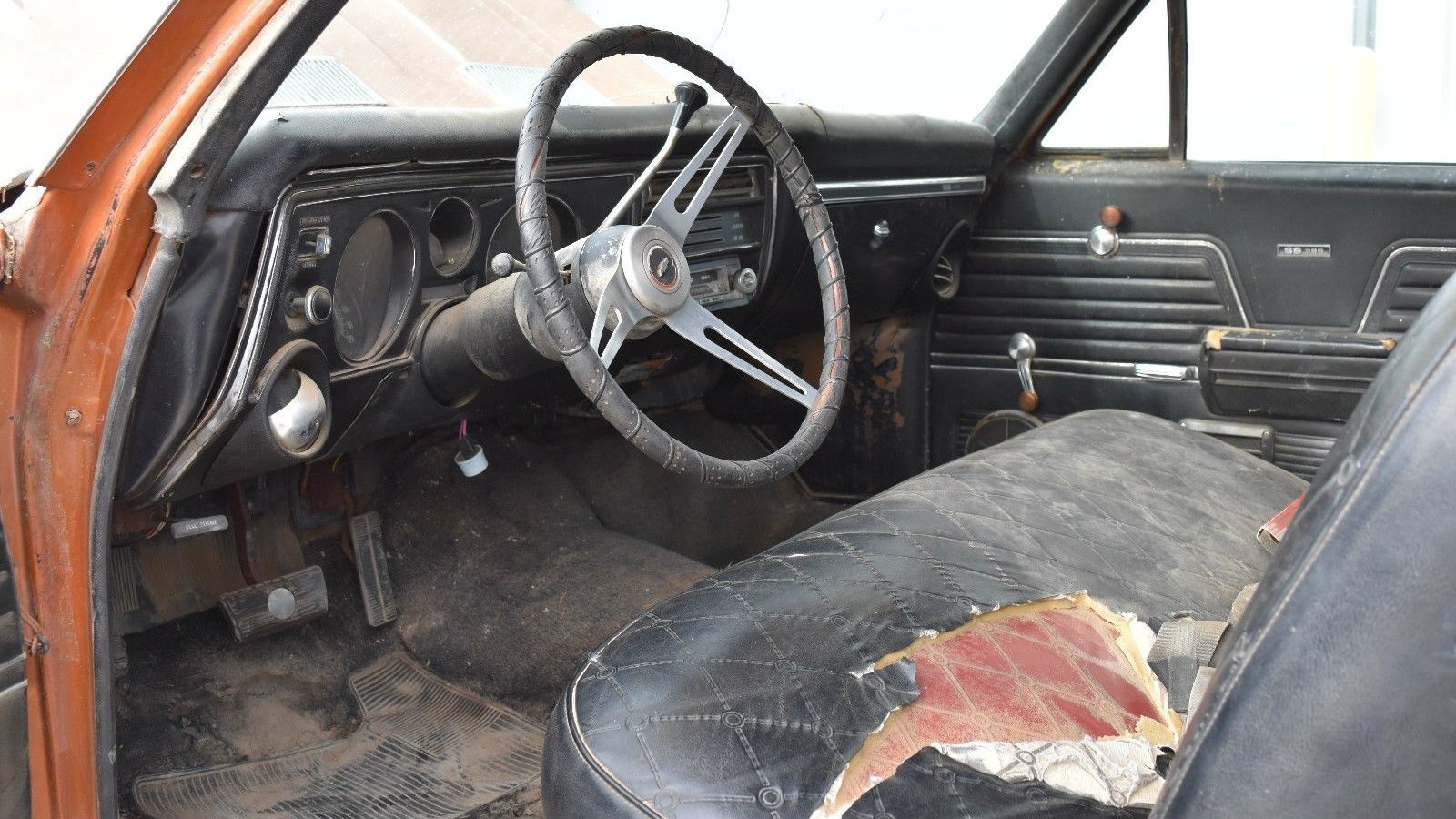 Wait a minute! I thought you said this was an SS396, Jamie? Well, it is, but unfortunately around 30 years ago, the 396 was replaced with a 1968 Chevelle 327 small block. The seller has got it running, but with a miss. And I doubt that anyone putting this car back on the road will be leaving the small block in there, anyway. Would you?