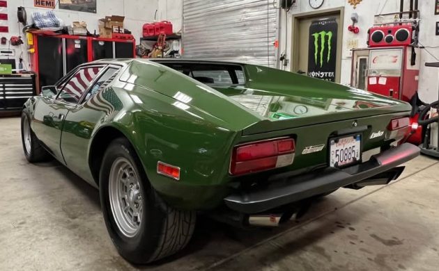 A 351 cubic inch Ford Cleveland V-8 engine sends 330 horsepower to the wheels via a manual transmission. The car is said to run and drive. The seller notes a set of Pat Mical hand-bent custom headers, Euro GTS exhaust, Blue Thunder Pantera Intake, Holley 670 Avenger carb, and Duraspark distributor have been added to the car. The modifications are said to make the car perform and sound better. The stock radiator was removed and modified for maximum efficiency. Twin Spal fans have been added as well as a smaller diameter aluminum pulley to increase flow at idle. This is a rare opportunity to own a well-cared-for, low-mile 1974 Ford DeTomaso Pantera. If you’re looking to beef up your collection contact the seller on Facebook.