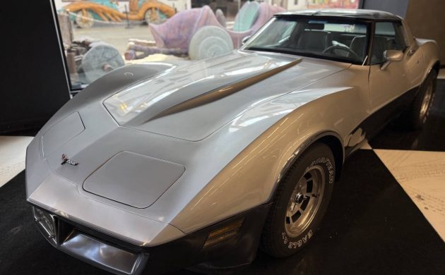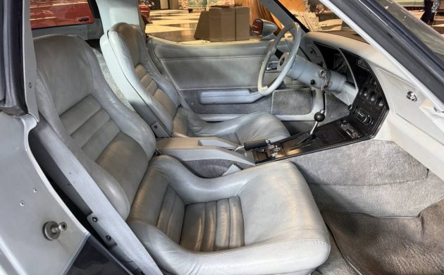 The silver over dark charcoal two-tone exterior finish highlights the aggressive curves of the fiberglass body. With just 27,000 original miles, this car is equipped with mirrored glass T-Tops that catch the silver leather interior. This Corvette is shod in its original aluminum wheels but there are no pictures of the engine bay. Today, we still wish the 1981 Corvette had more power but, we see the final, polished evolution of the classic Stringray silhouette. This car has a number of options including an ETR digital radio and power antenna.