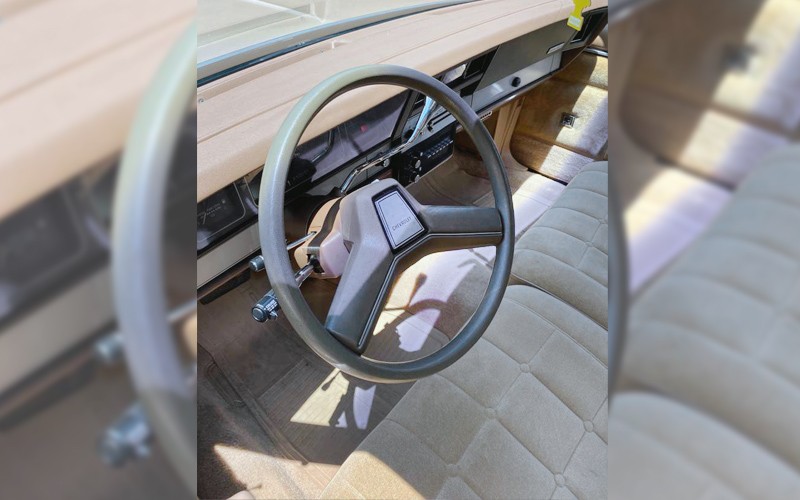Gramps had the previously mentioned 2 tone paint, the locking wire caps, cornering lights, all possible options that show on the exterior possible (except the vinyl top). The interior was basic in that it had the fixed column, AM radio (I couldn’t find a silver faced AM/FM in a salvage yard to save my soul lol), crank windows, no cruise control. It had air conditioning, but that was it. It had the same buckskin colored interior as this, and boy was that upholstery indestructible!