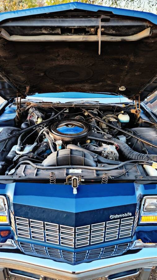 The 1977 Toronado could never be classed as small or compact at nearly nineteen feet in overall length. However, the original owner’s decision to order the car in Dark Aqua with a Pale Blue vinyl top prevents it from looking heavy and cumbersome. Its history is unclear, but its presentation is virtually impossible to fault. The paint shines richly, with no significant flaws or defects. The vinyl is as-new, and the panels are as straight as an arrow. Cars from this period were not renowned for their fit and finish, making the consistent panel gaps on this Olds a pleasant surprise. There are no visible signs of rust, with the seller describing the underside as immaculate. The tinted glass is crystal clear, and the sparkling chrome provides a stunning contrast to the dark paint shade. The damage-prone hubcaps look perfect, and the owner’s decision to add whitewall tires helps emphasize the Toronado’s luxury credentials.