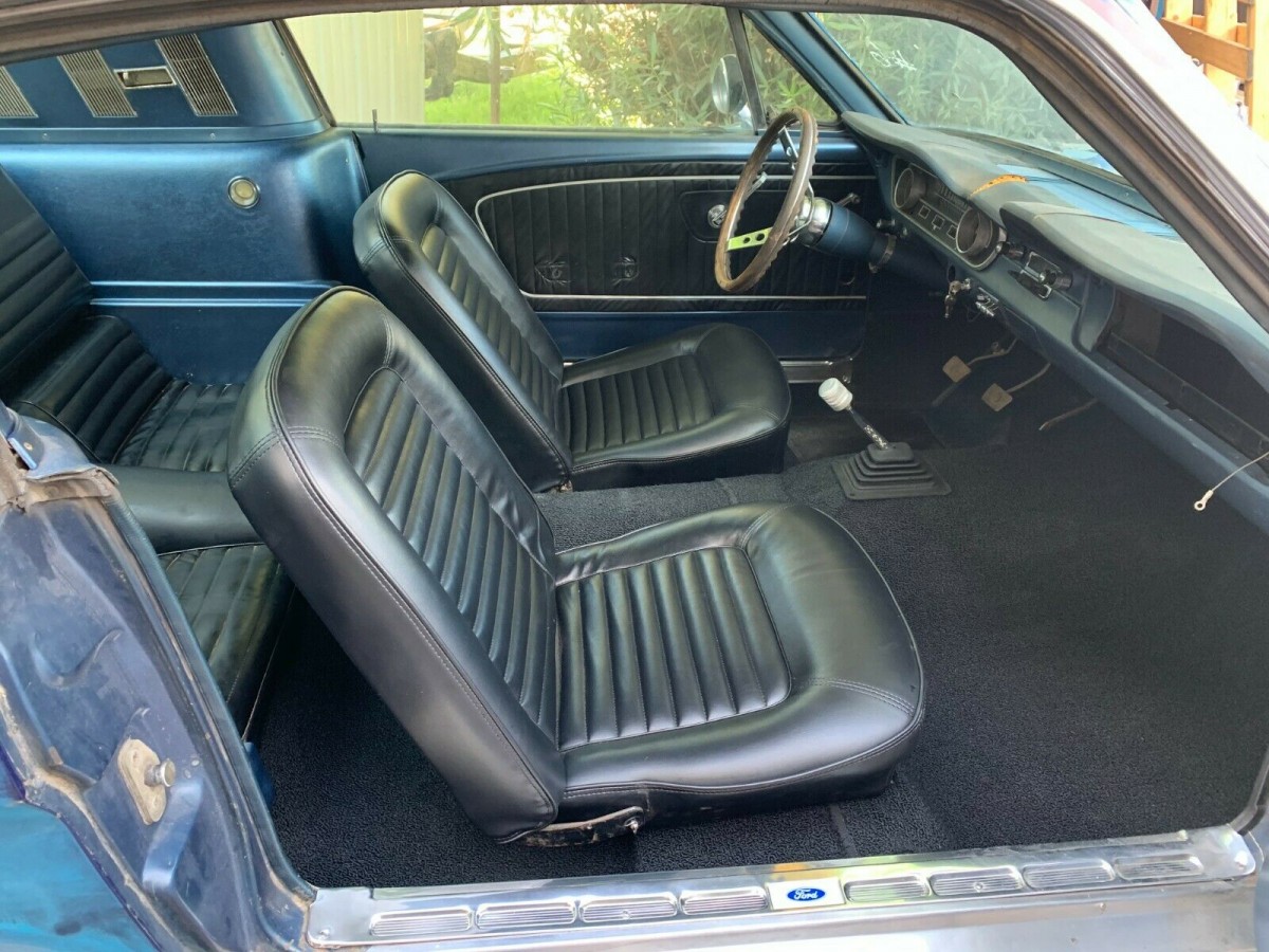 The Mustang’s interior is partially restored, and the buyer will need to complete it. The front seats have been treated to new foam and covers, while the floors have received a new carpet set. There is still plenty to do if the rest of the trim is to be brought up to the same standard, but at least the required parts are plentiful and affordable. A dash pad and glove compartment door will be high on the shopping list, but how things proceed from there will be a matter of personal preference. The original radio remains in its rightful place, so at least the dash hasn’t been cut. Aftermarket additions include a wood-grain wheel and a Hurst shifter for the 3-speed transmission.
