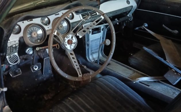 The list of restoration tasks continues to grow as we focus on this Mustang’s interior. It is missing the factory radio but appears otherwise complete. Trimmed in Black vinyl, it features a desirable center console, but it requires a complete retrim as the starting point to recapture its youthful good looks. Kits retail for approximately $1,800 and include most of the vinyl, foam, carpet, and soft pieces needed to achieve a high-end result. A new wheel will find its way onto the shopping list, and a close inspection will undoubtedly reveal other items requiring replacement.