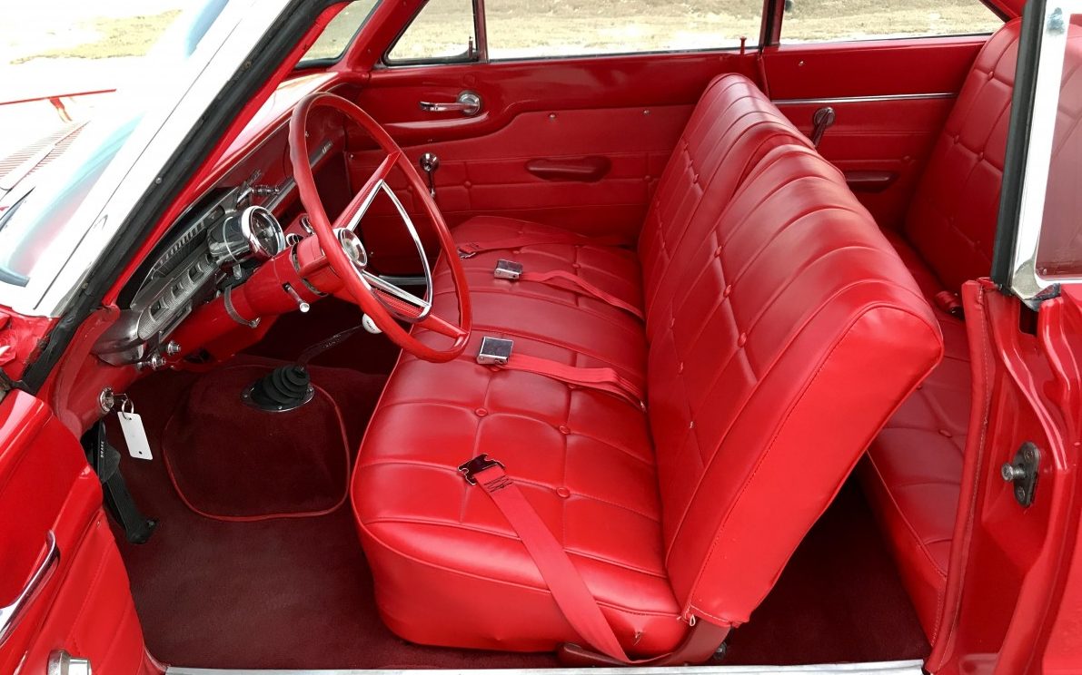 It looks nice but I’d like to know how much Bondo is hiding in all the holes that were filled in when they removed all of the side trim. I have a 61 Falcon that the former owner did the same thing to The lower trim and left the upper trim in place. Some of it is cracking and my intent is to grind it all back off and reinstall the trim. The problem is the lower trim for both the left and right doors is impossible to find as it was 61 specific. However, I only paid $3200 for the car so it’s a little more forgivable than at the price this Comet is starting at. I expect that Anyone who wanted to put this Comet’s trim back on would have a similar situation. And with that red interior, I’d have painted it black again, not resale red.