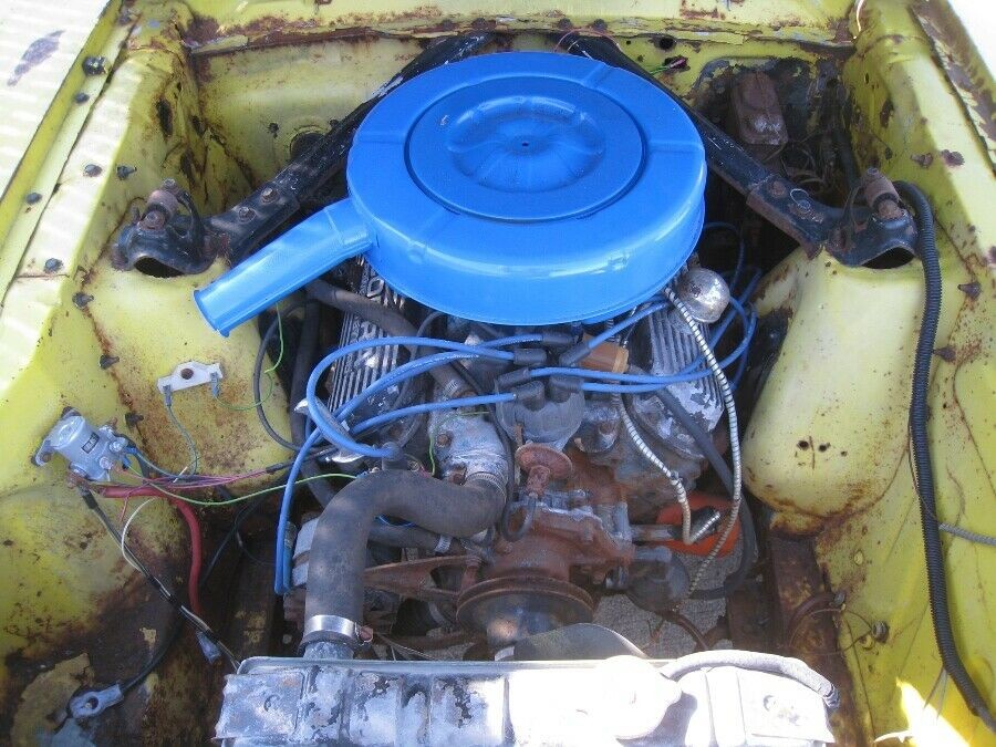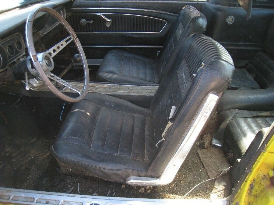 The body looks reasonably sound, and while it is likely that this paint job is an ancient respray, I wouldn’t be imposed to running it given I’m not offended by some genuine patina. The fastback body seems to have a devout following, as these cars typically go for a good price when they do come up for sale. With certain models, the 2+2 arrangement would be detrimental to the car’s value, but it doesn’t seem to be a problem here. The Mustang retails its original hubcaps, and the chrome bumpers look reasonably straight. There’s a chance this may have originally been a Springtime Yellow car based on the next photo.