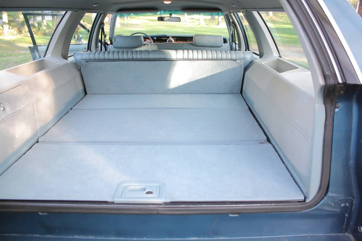 It most certainly has the optional gauge package, trip odometer and electric clock. It also has the optional luxury steering wheel, bumper guards and strips, whitewalls and deluxe wheel covers. Plus I assume it has at least an AM radio. It looks like they ordered body side moldings and rear cargo flooring carpet too. It doesn’t have the obvious options but someone did order a few things to customize this wagon to their liking.