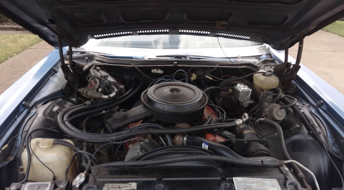 The blue paint looks quite good, and the interior is okay, but at least one door panel has yellowed with age and some of the upholstery may not be far behind. Also, the seat bottom has towels over it, so are there issues underneath, and the dash pad is also cracked. So, to turn this into a showpiece, plan to budget some shop time for the interior. And on a strange note, the photos provided show two different sets of wheel covers, neither of which would be correct to the 1973 Caprice. The seller is asking for top dollar for this automobile, so is it a top dollar offering?