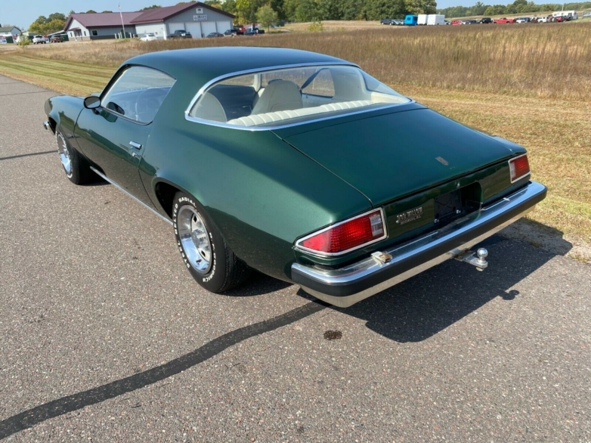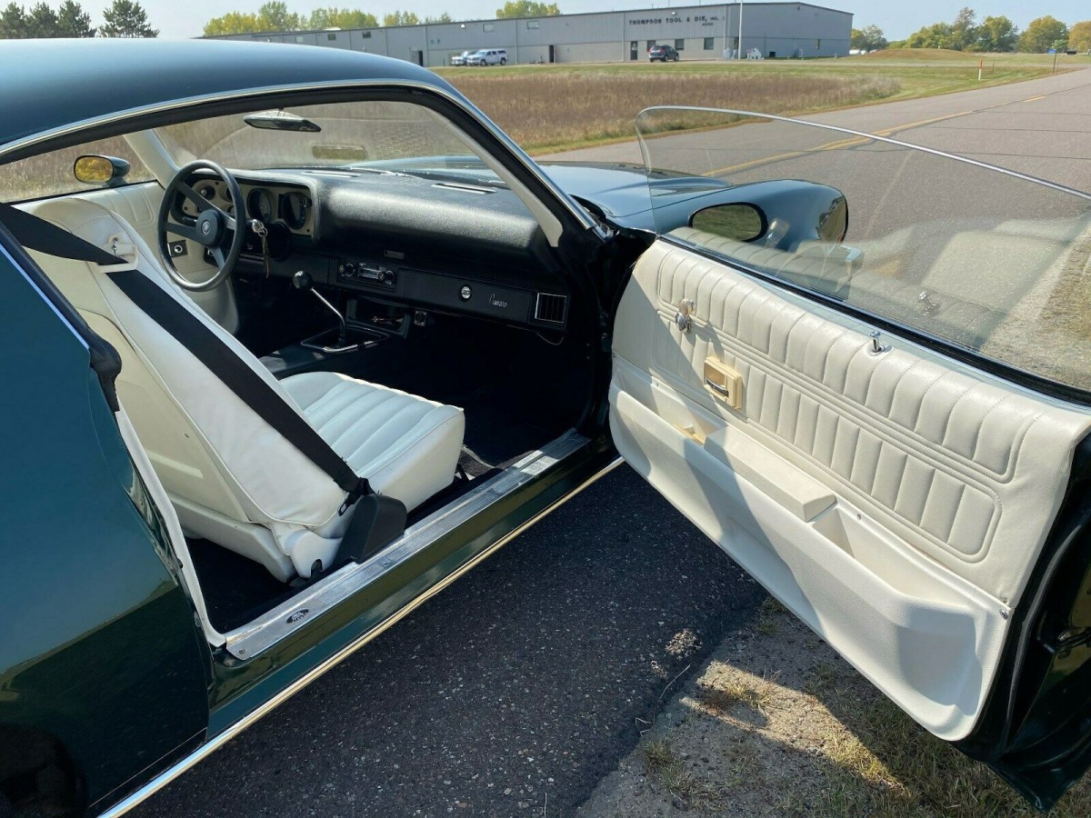 There are some cars that just bring back memories. This 1976 Chevrolet Camaro is in excellent condition and, while not a barn burner, is a clean example of a basic Camaro from the mid 1970’s. It is hard to believe that it has survived all this time. There is only one day remaining in the auction here on eBay. The car is currently bid to $9,702 and is listed at no reserve. So, sometime on Tuesday, it will sell. The car is located in Hamel, Minnesota and is advertised as a low mile car. The ad states that the odometer reading is only 27,730 miles. Only 3,984 of the 182,959 Camaros produced in 1976 were painted Code 49 dark green.