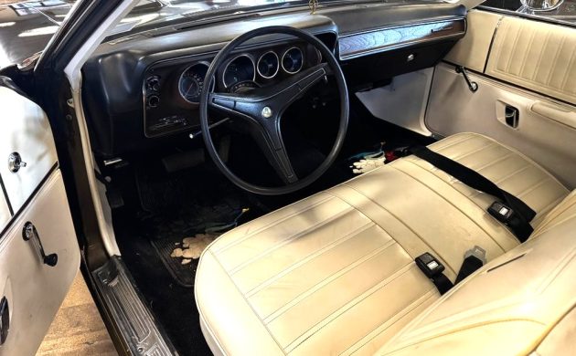 The Mopar’s appearance is contrasted with correct white stripes and an ivory interior, which has a bench seat rather than buckets. And the automatic is column-shifted, eliminating the need for a console if it had single seating. Options are typical, just as power steering and power front disc brakes. We assume the car drives as good as it looks, and this should be a fine addition to any collector – if the price point is correct. Heads up to “Curvette” for the tip!