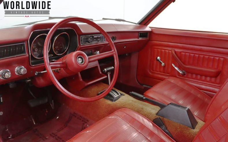 I can’t quite tell if the carpet on the top of the tunnel is faded or if it’s a trick of the lights. They provide detailed photos showing beautiful, deep-red carpet in the footwell and by the emergency brake handle so maybe it’s the lighting. You can see that this car has Ford’s Cruise-O-Matic transmission rather than a manual and there are some cracks in the vinyl of the driver’s seat, otherwise, the interior looks fantastic right down to the rear cargo area.