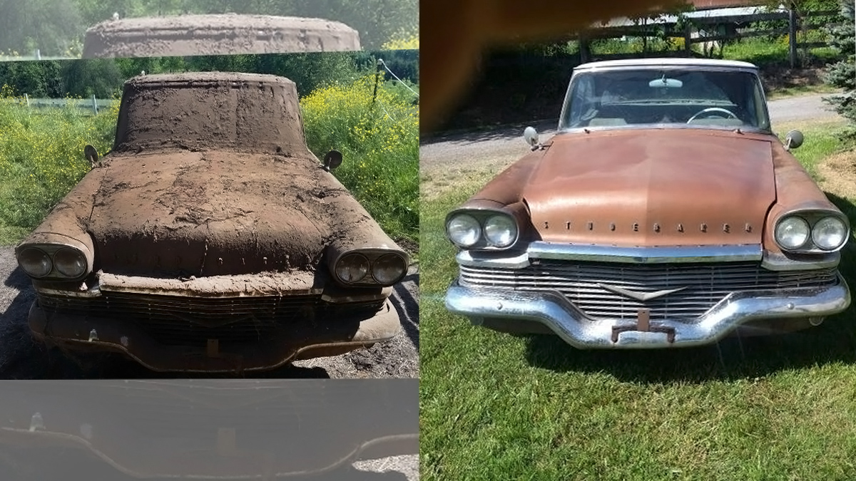 I wasn’t really aware of these last-of-the-last Packard-Bakers until this site brought closer attention to them. The wagon from a few posts back was so ungainly – Like a train wreck, I couldn’t look away! The Gremlin is still my top “love it ’cause it’s ugly” pick; but these ’58’s are growing on me. Keep ’em coming.