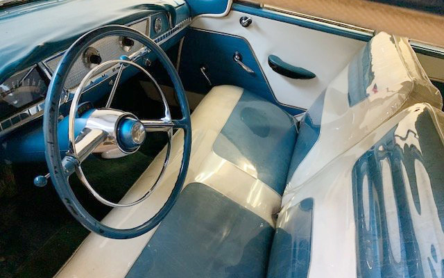 Clear plastic covering the seats is exactly what you would expect to see on this car, but are we to believe that is plastic from 1957? Not yellowed and not torn?