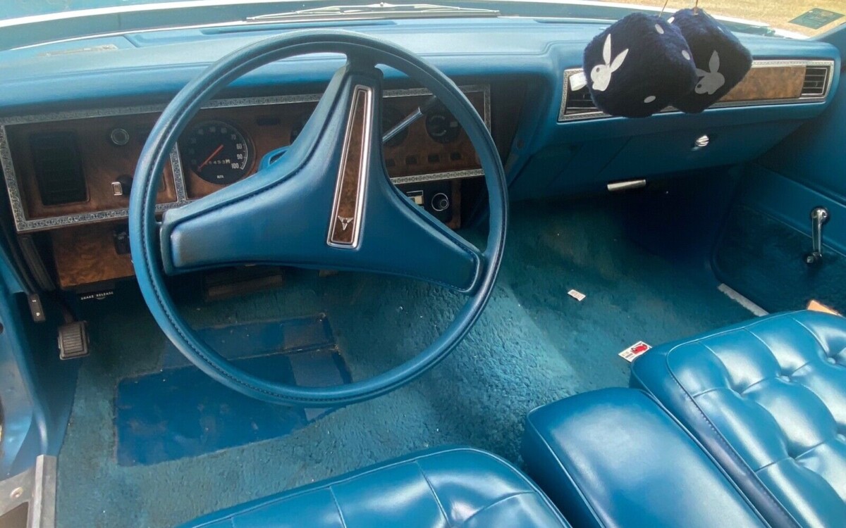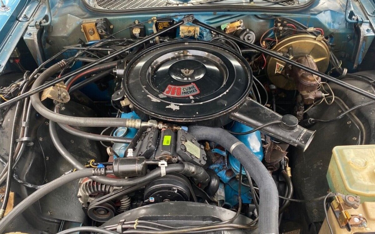 Those blue seats were in style and pretty rockin’ for the mid-seventies, and the interior as a whole is still looking really good on this one. The carpet has some wear on the driver’s side, but the dash and instrument panel looks very nicely preserved, plus even the factory clock is still keeping time! It’s cool too that this car is also equipped with a retractable sunroof, which is always a fun toy as long as there are no leaks involved. I’m not finding much not to like here, and while ’75 may not be my favorite year for the Charger, I’m thinking this one’s awfully nice. How about you?