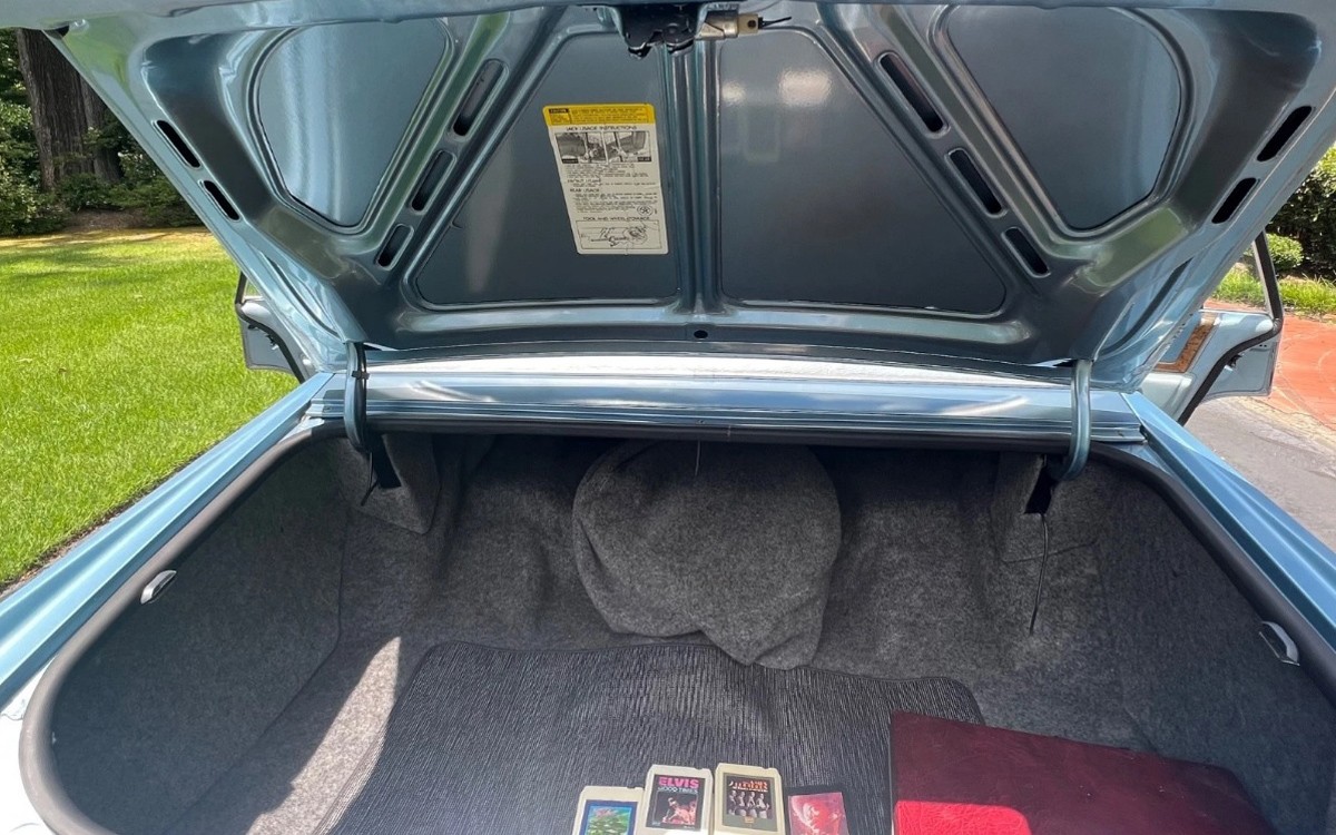 I was expecting leather, but these puffy velour seats are probably more comfortable in Alabama and Tennessee’s hot and humid climate. I know, I know, just turn the AC on, SG. This car has air-conditioning, of course, and the seller says it blows ice-cold. The back seat looks unused, and the trunk looks perfect as well. This is one car I don’t need to see underside photos of before bidding.
