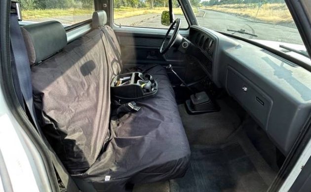 This is just a great old truck to have. 5 speed can help you keep up on the highway. It would be perfect for Home Depot runs on the weekends. I don’t know what I would do to it. Theres either a mint condition seat under that cover……… Or……. Not so much. I wouldn’t be against redoing the bench seat and any other needs it has. Bit I wouldn’t go nuts with it. Its a base model 6 cyl stick shift work truck. But I like it…. Hubcaps and all.